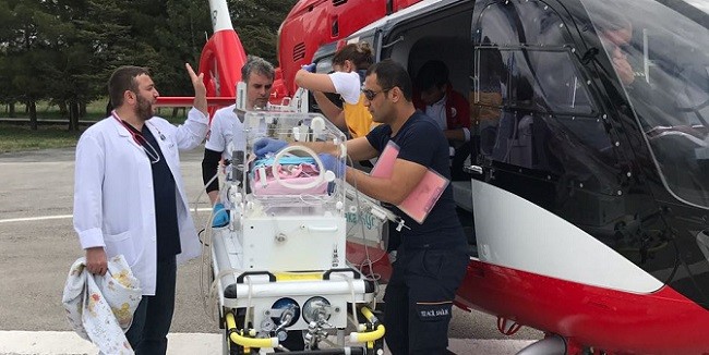 Hitit Üniversitesi Erol Olçok Eğitim ve Araştırma Hastahane’sinde 28 haftalık prematüre olarak dünyaya gelen minik bebek helikopter ambulans ile Ankara’ya sevk edildi.
