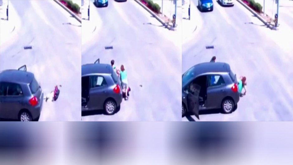 Yaklaşık 3 yıllık olduğu belirtilen görüntü sosyal medyada günün konusu oldu. Görüntülerde, seyir halindeki bir otomobilin arka kapısının açılması sonucu oto koltuğuyla birlikte bebek düşüyor. Bu sırada trafiğin boş olması da olası bir faciayı önlüyor. Hemen aracı durdurup koşarak bebeklerini yoldan alan anne ve yanındaki çocuğa bu kez geri geri gelen otomobil çarpıyor. Çocuğuyla birlikte yere düşen talihsiz anne ve çocuğu vatandaşlar tarafından kurtarılıyor.