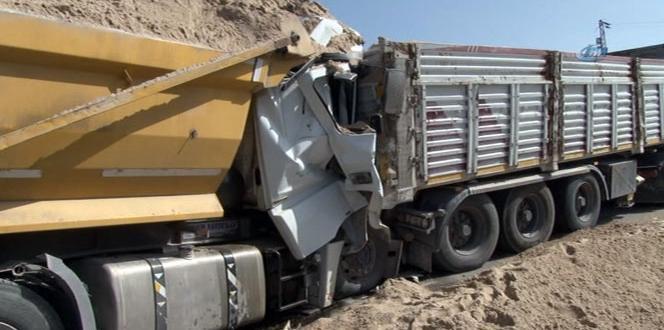 Çorum’da yol yapımında çalışan özel bir firmaya ait hafriyat kamyonu, aynı alanda toprak yüklemesi yapan bir başka kamyonun üzerine düştü. Kazada genç sürücü hayatını kaybetti.