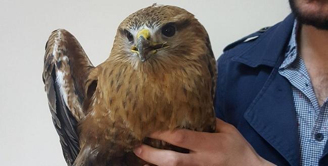 Çorum’da yoldan geçen bir sürücünün fotoğraf çektirmek için durduğu sırada yol kenarında yaralı halde bulduğu kızıl şahin tedavi altına alındı.