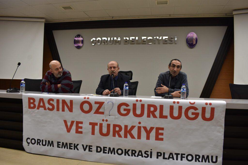 Çorum Emek ve Demokrasi Platformu tarafından düzenlenen “Basın Özgürlüğü ve Türkiye” konulu panelde basın özgürlüğü masaya yatırılırken, Abdi İpekçi, Uğur Mumcu, Onat Kutlar, Metin Göktepe ve Hrant Dink nezdinde katledilen gazeteciler de anıldı.