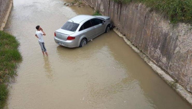 Çorum’un Alaca ilçesinde kontrolden çıkarak bariyerleri aşan otomobil, dereye uçtu. Kazada otomobil sürücüsü ölümden döndü.