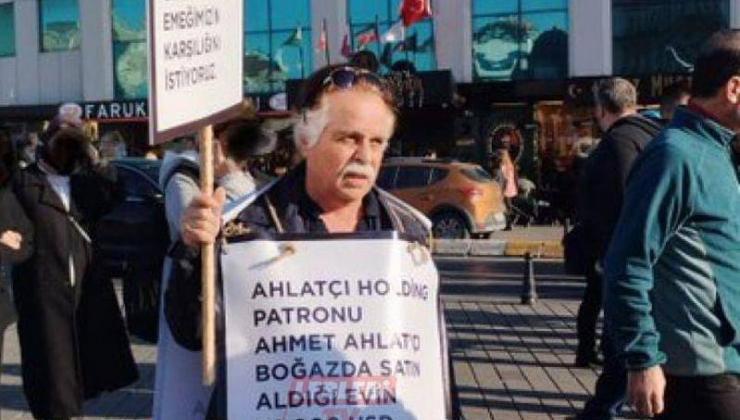 İsmet Canbolat isimli vatandaş, üzerine yazdığı ve elinde taşıdığı dövizlerle “Ahlatcı Holding patronu Ahmet Ahlatcı boğazda satın aldığın evin 62 bin Dolar komisyonunu öde. Hakkımızı emeğimizin karşılığını istiyoruz” diyerek eylem yapması tepki çekti.