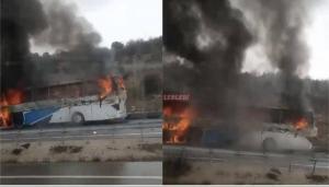 Çorum-Samsun Yolu’nda Yolcu Otobüsü Alev Topuna Döndü