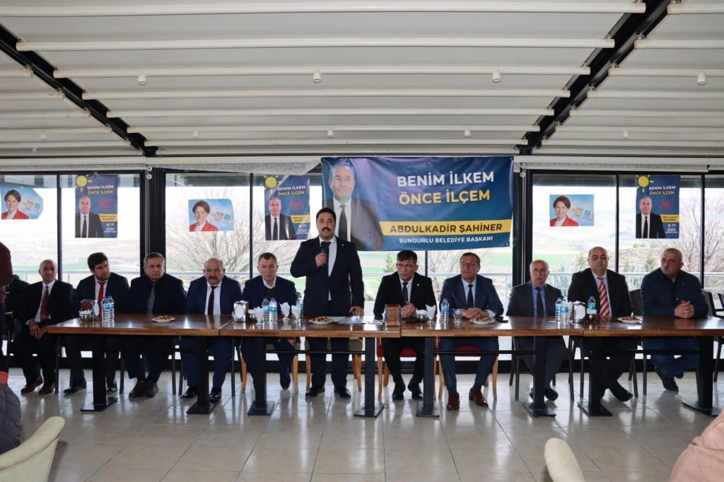 Çorum’un Sungurlu ilçesinde İYİ Parti’de rozet takma töreni düzenlendi. Düzenlenen törende 150 kişi Belediye Başkanı Abdulkadir Şahiner’e destek olmak için İYİ Parti’ye üye oldu.