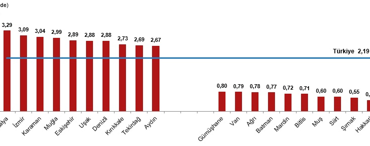 Kaba boşanma hızının en yüksek olduğu il, binde 3,29 ile Antalya oldu