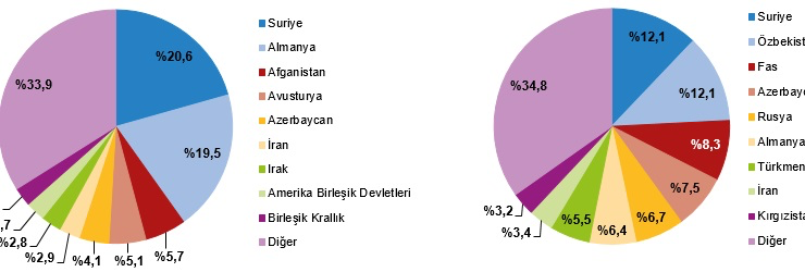 Yabancı damatlar uyruklarına göre incelendiğinde, yabancı damatlar içinde %20,6 ile Suriyeli damatlar birinci sırada yer aldı. Suriyeli damatları %19,5 ile Alman damatlar ve %5,7 ile Afgan damatlar izledi.