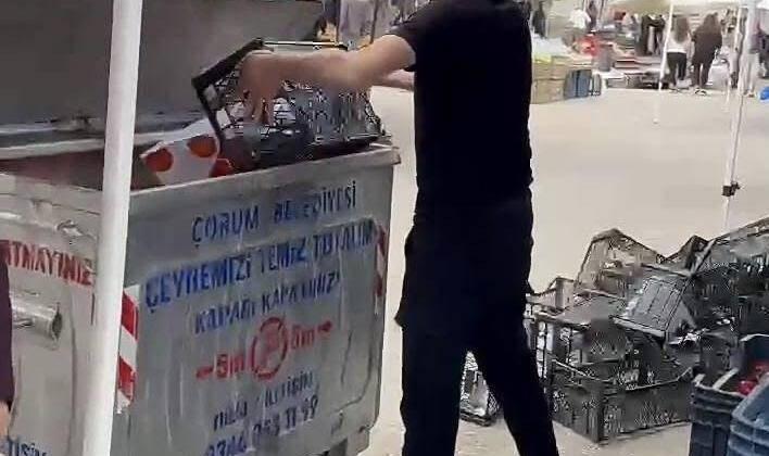 Çorum’da Z .R adlı bir pazarcının domatesleri tepki olarak vatandaşa daha uygun fiyata satmak yerine çöpe döktüğü görülmüş, kişi hakkında Çorum Ticaret il müdürlüğümüz tarafından inceleme ve işlem başlatılmışdır, incele neticesinde bu eylemin piyasada